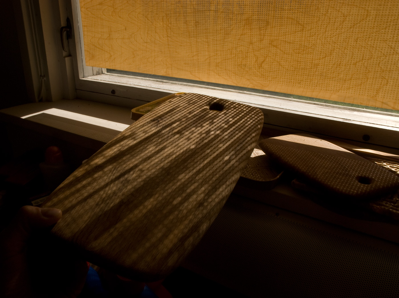 the sun/shade work mounted on a window, in shadow
