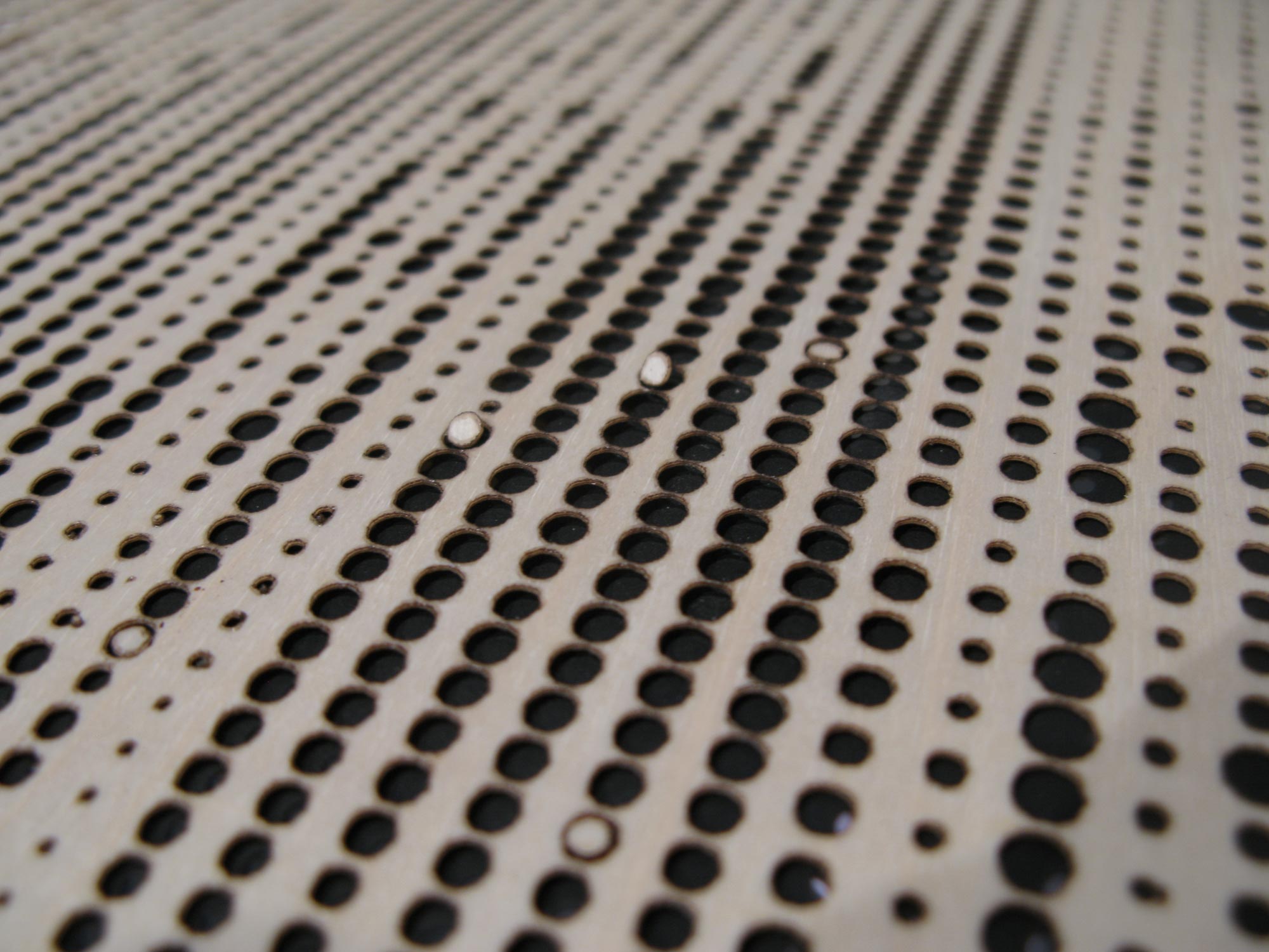 the work on a black background, making the holes more visible
