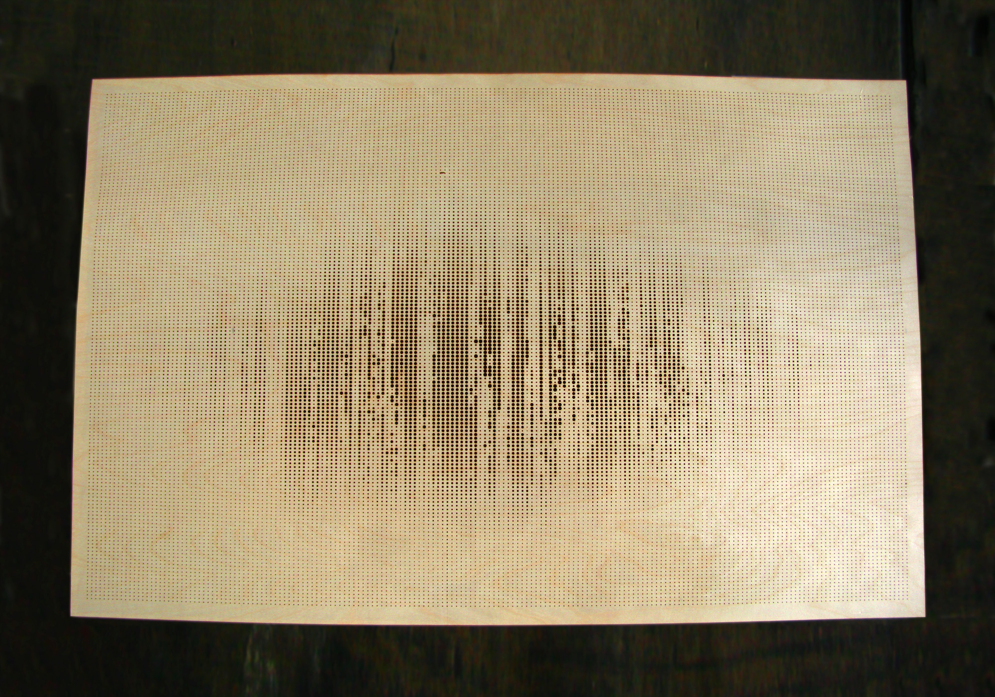 the work on a black background, making the holes more visible