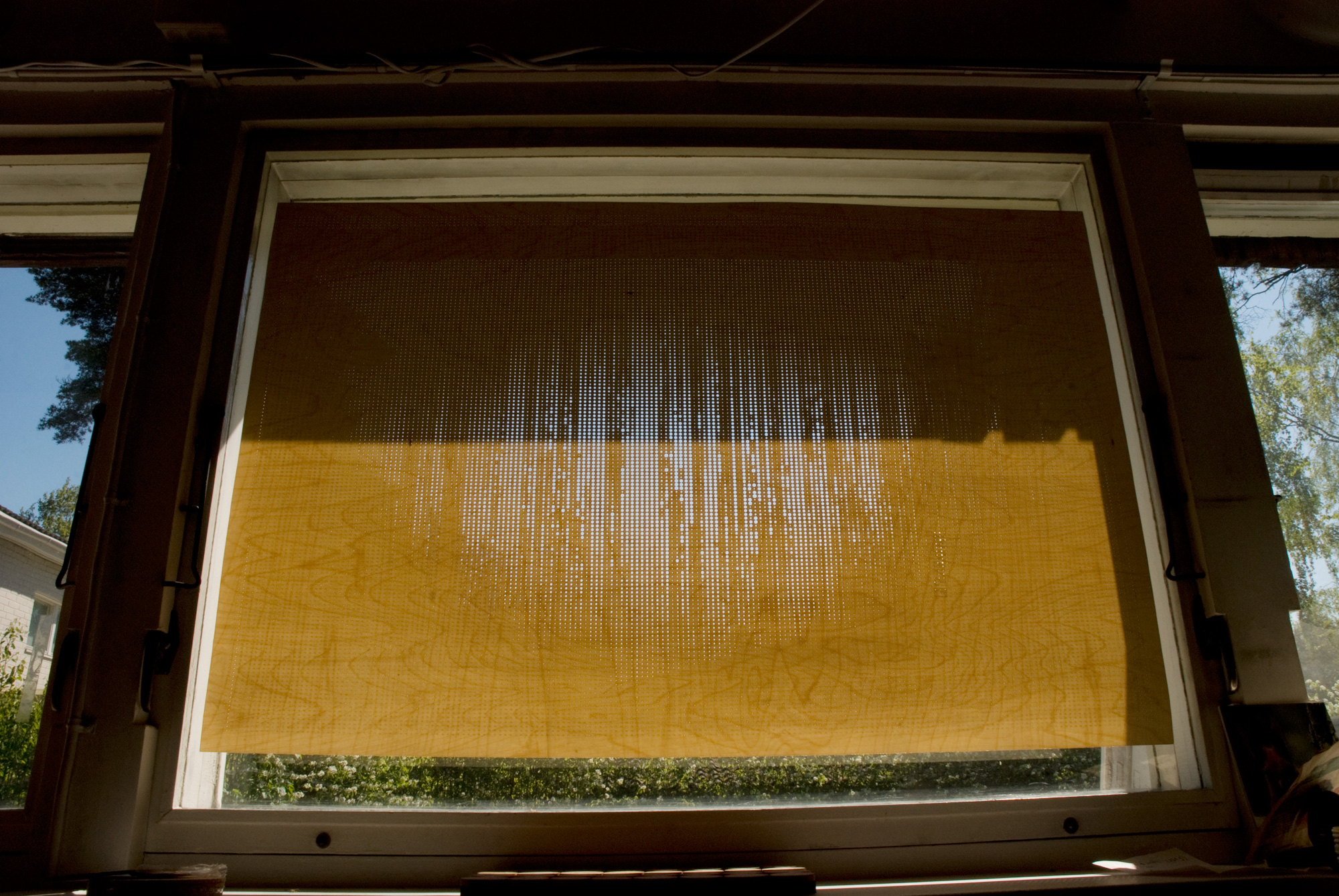 the sun/shade work mounted on a window, in shadow